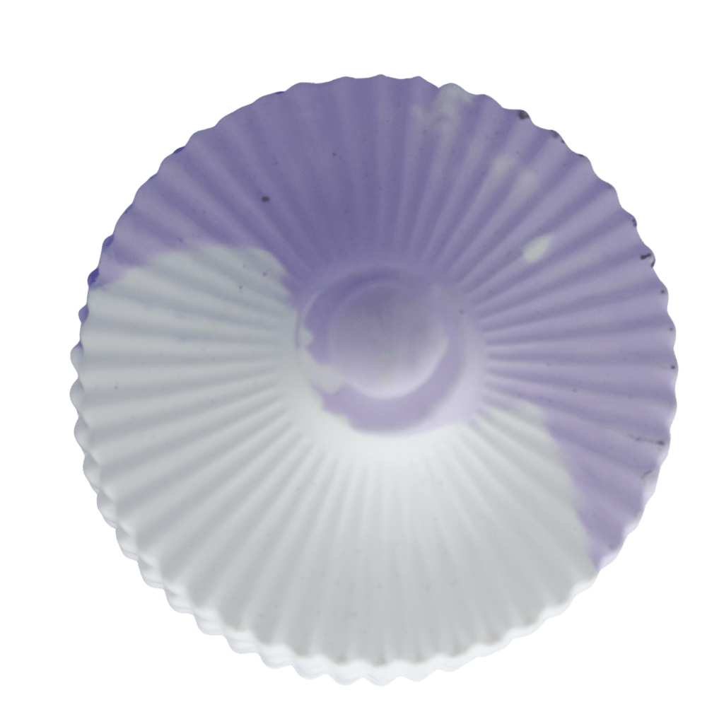 Vela en recipiente de resina acrílica con forma elegante y acanalada.