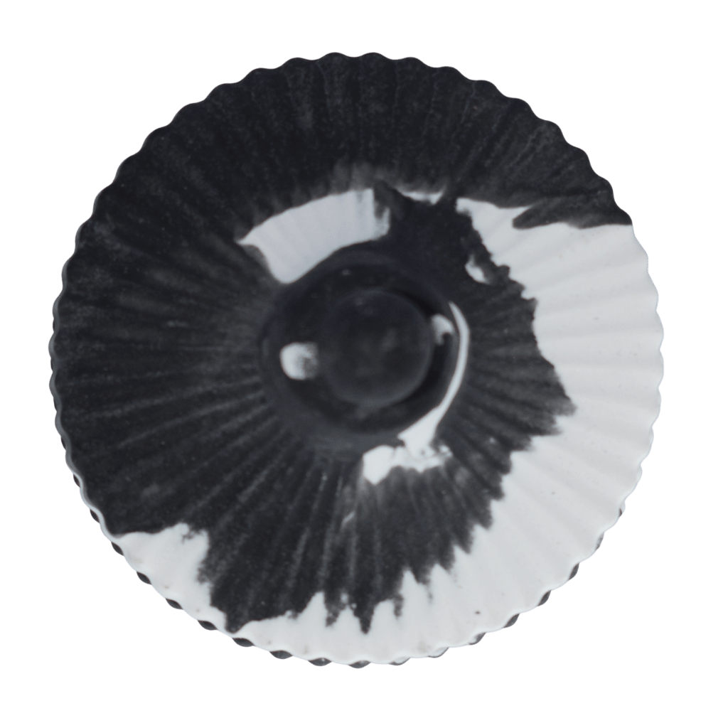Vela en recipiente de resina acrílica con forma elegante y acanalada.