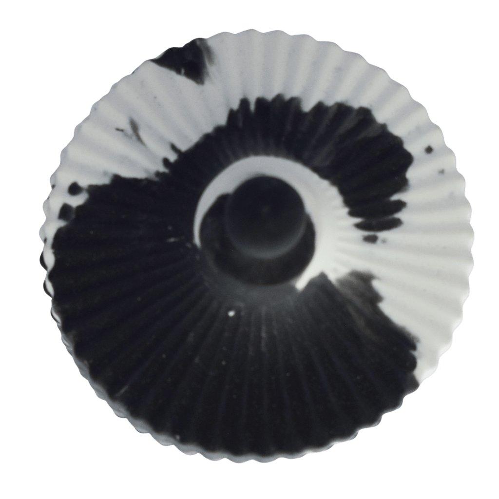 Vela en recipiente de resina acrílica con forma elegante y acanalada.
