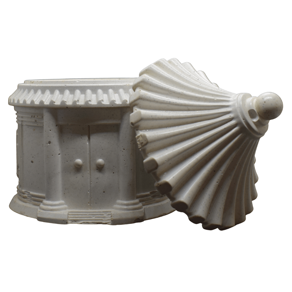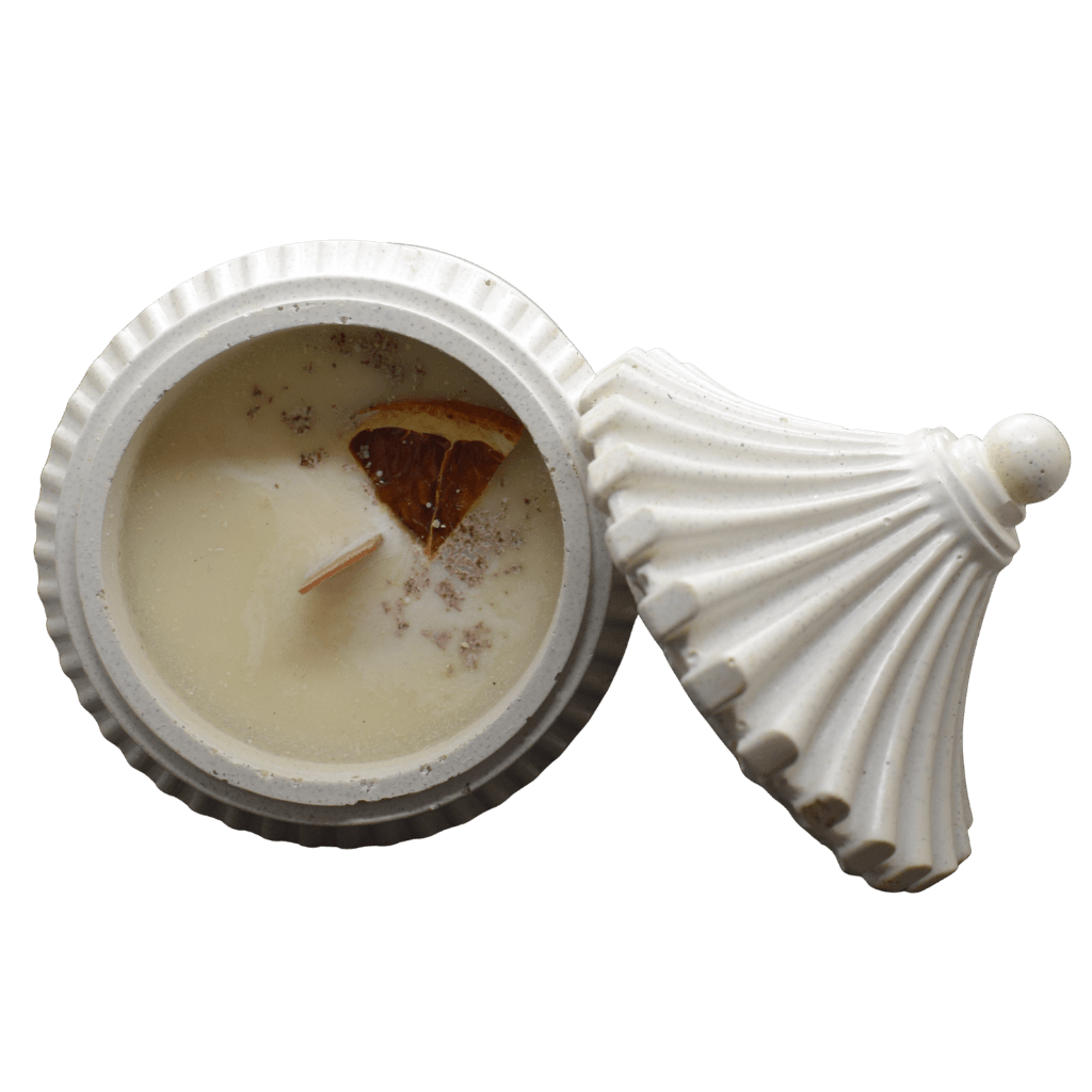 Vela en recipiente de resina acrílica con forma de casa asiática.