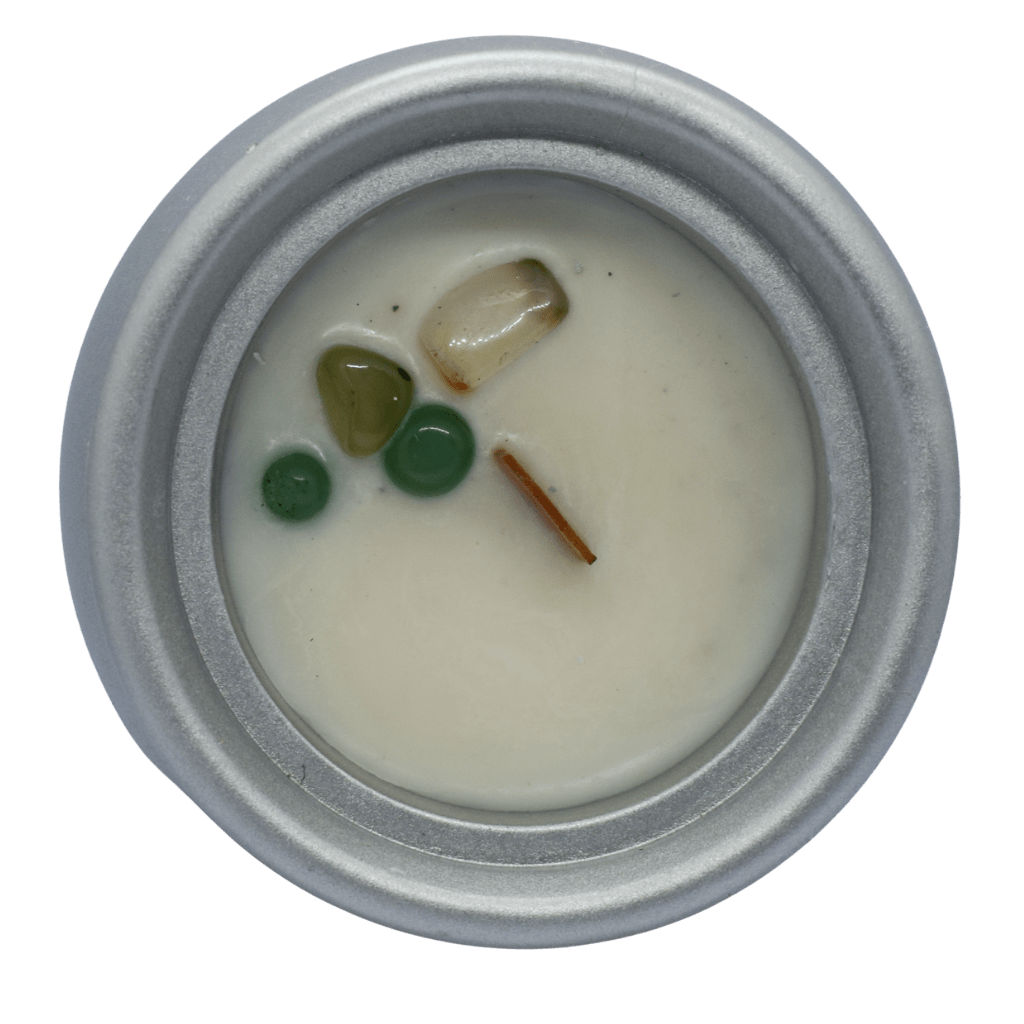 Vela en recipiente de resina acrílica con forma de caldero.